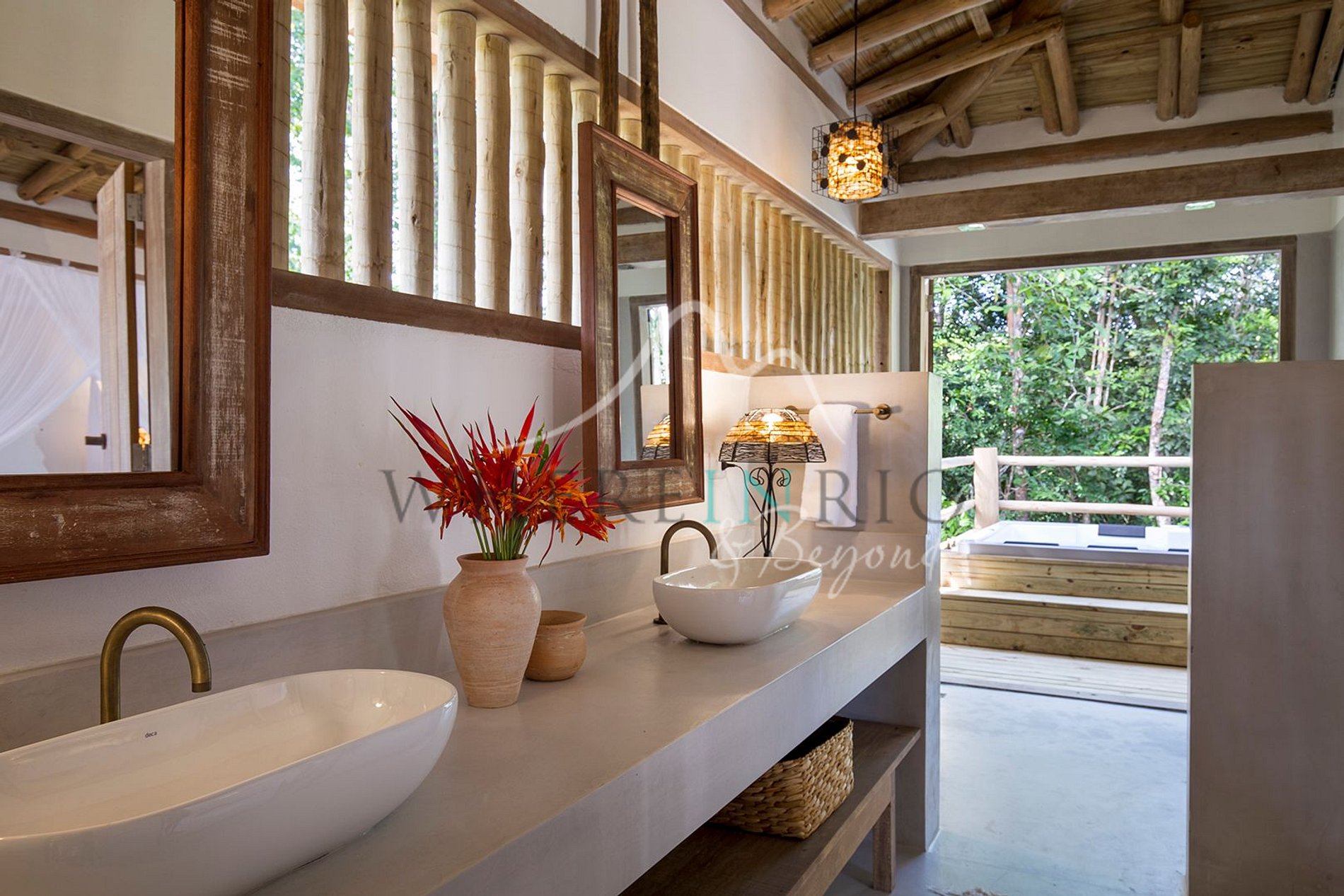 Casa boho-chic com piscina e hidromassagem em Trancoso, cercada por natureza.