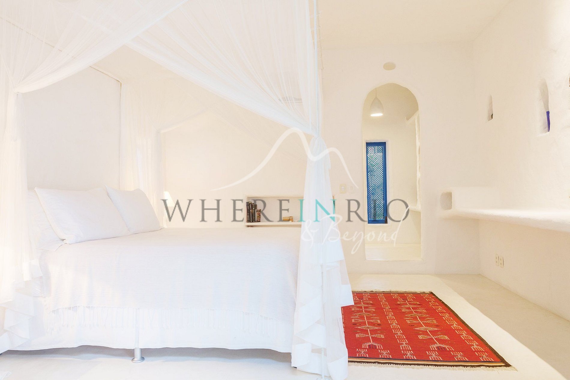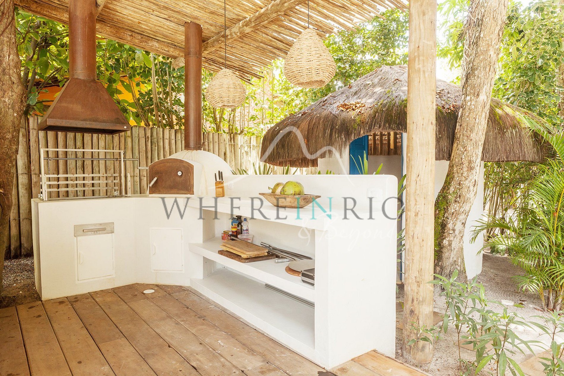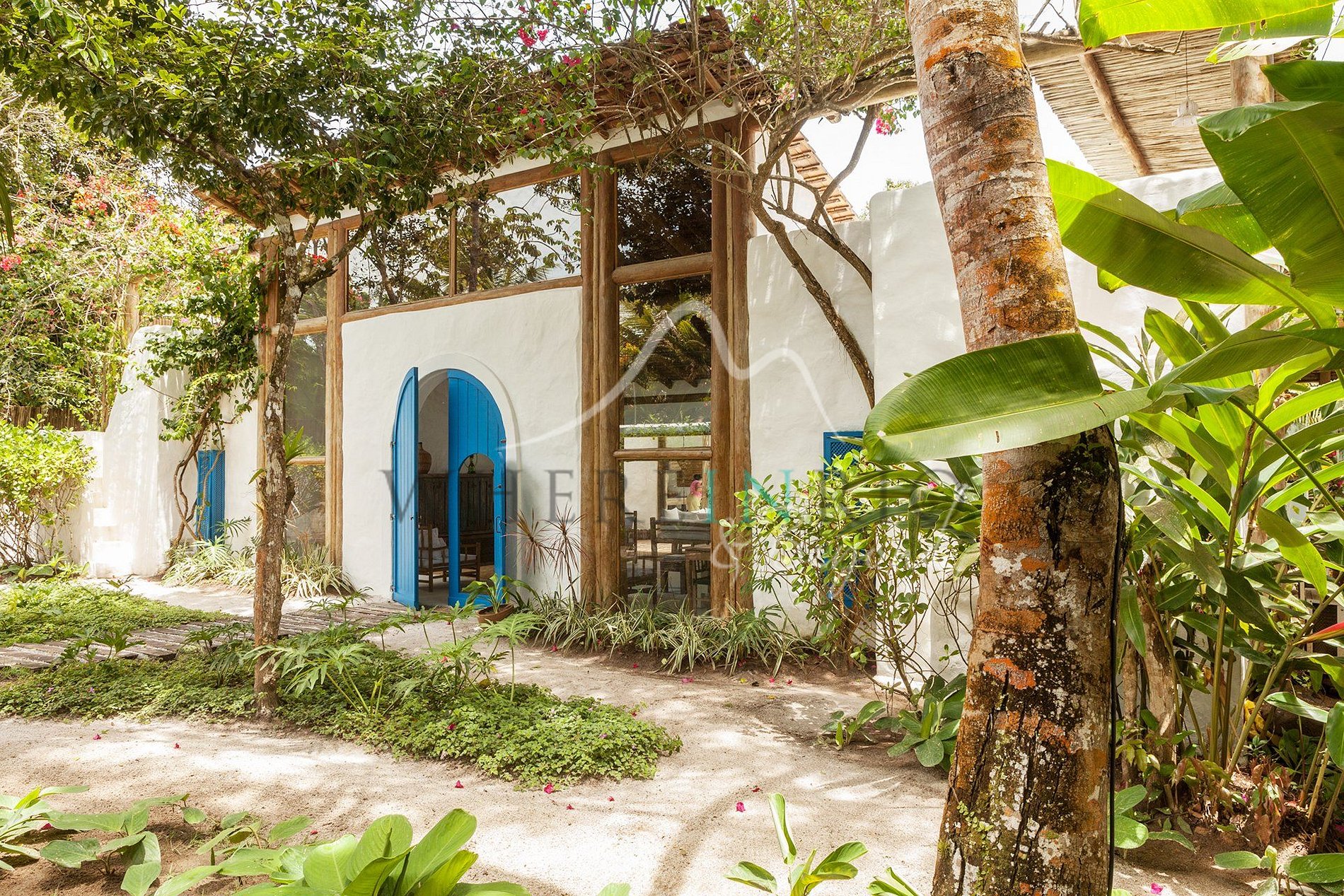 São 4 suítes confortáveis, incluindo uma casa na árvore. A piscina central está rodeada por sala espaçosa, cozinha com estilo mediterrâneo, churrasqueira, terraços e lounges. Tudo decorado com elegância boêmia e tropical.