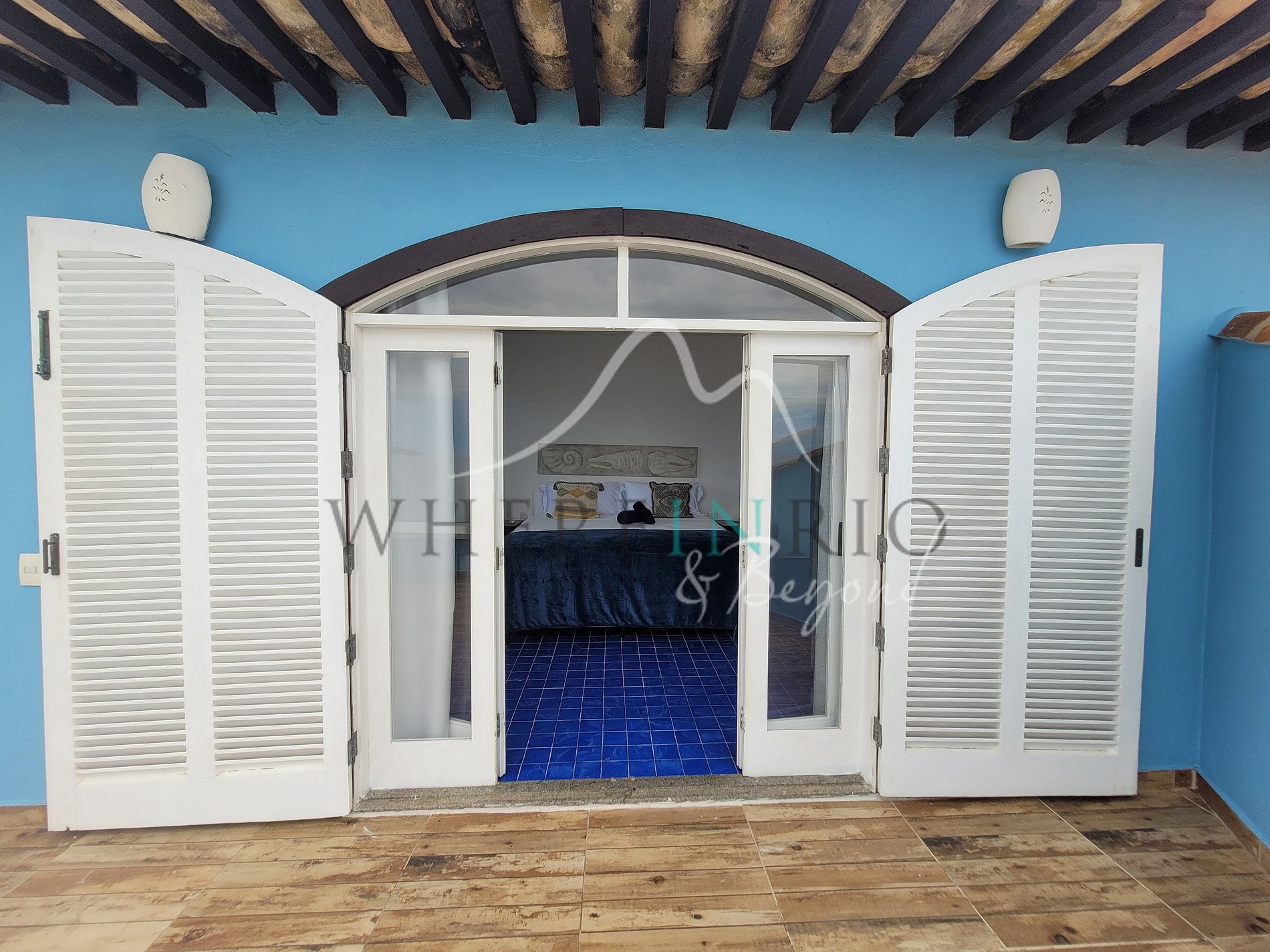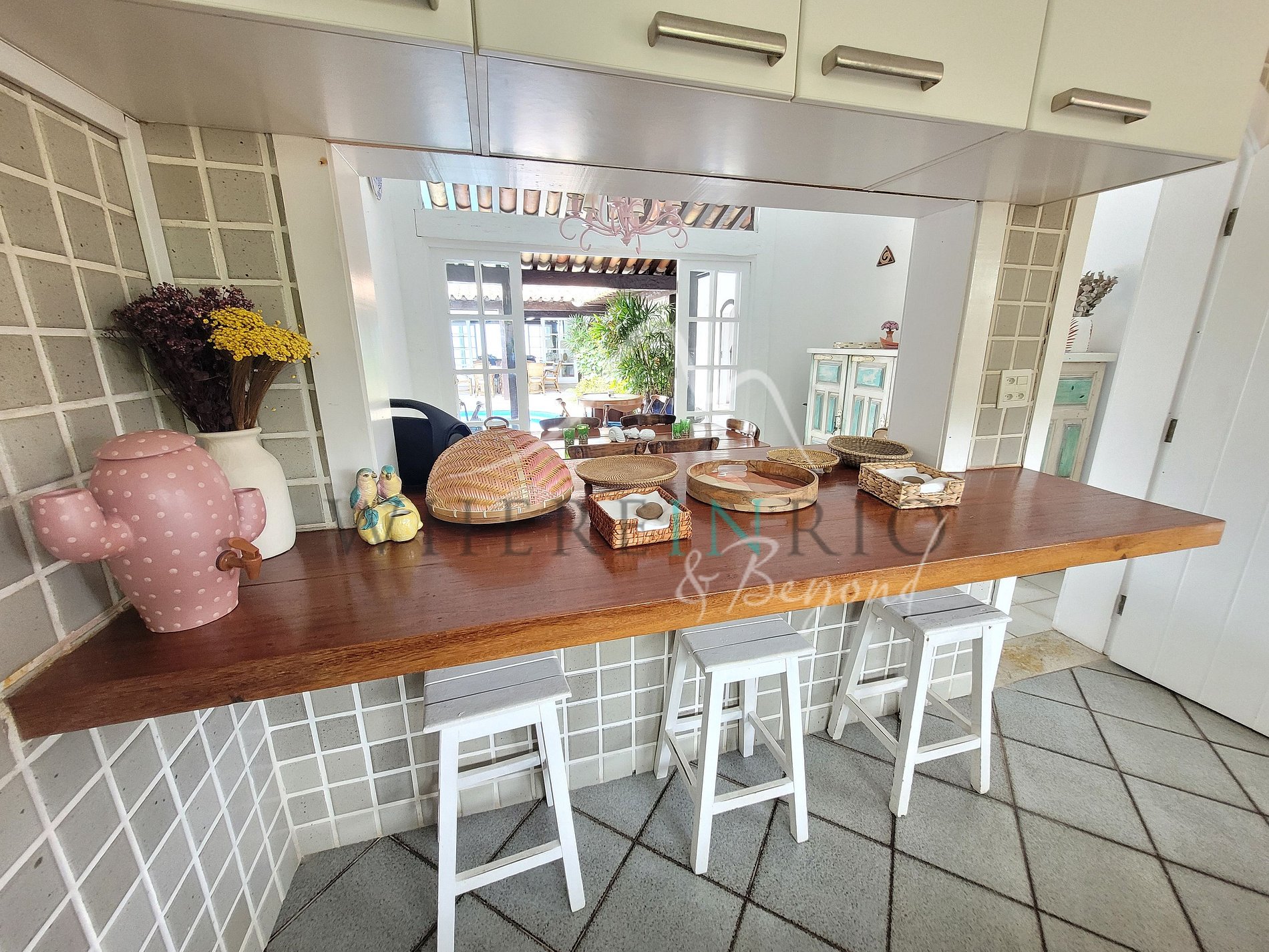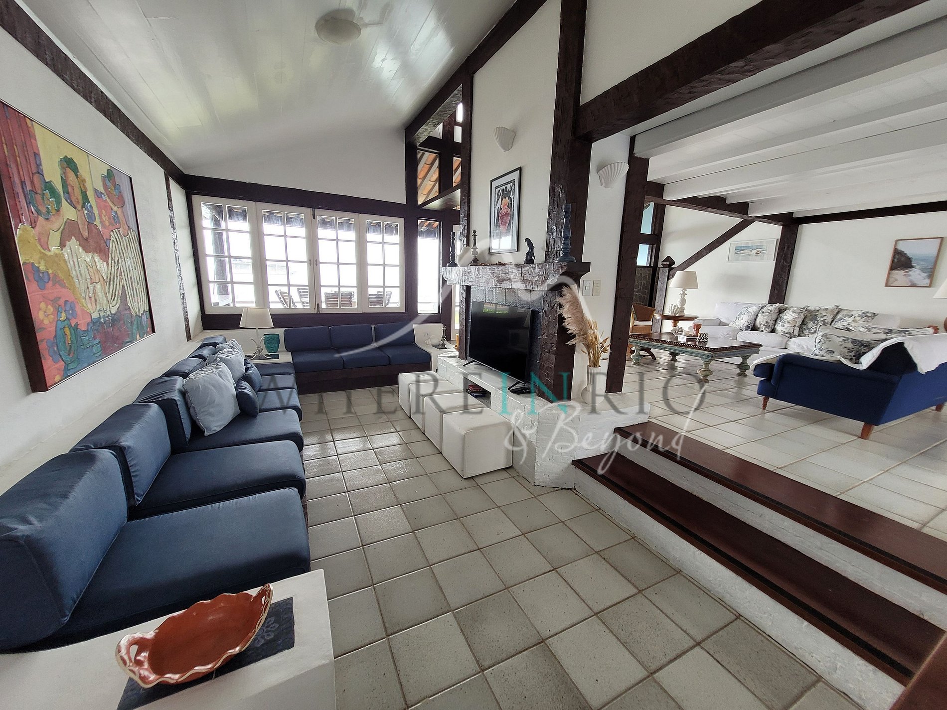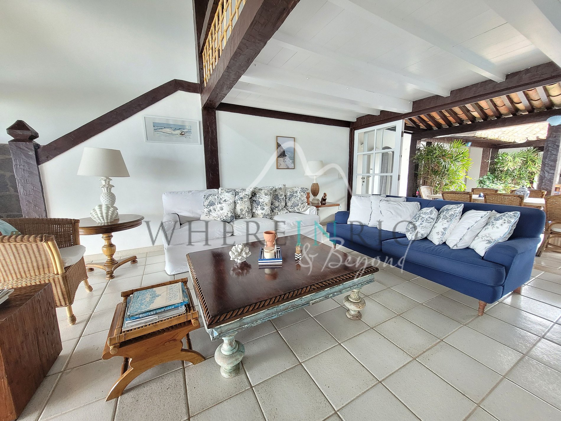 Decorada em tons claros e azuis, é uma casa encantadora com um layout especial que permite que amigos e famílias se reúnam de uma forma muito amigável. Os quartos, a sala de estar e a cozinha estão todos abertos para a área de estar.