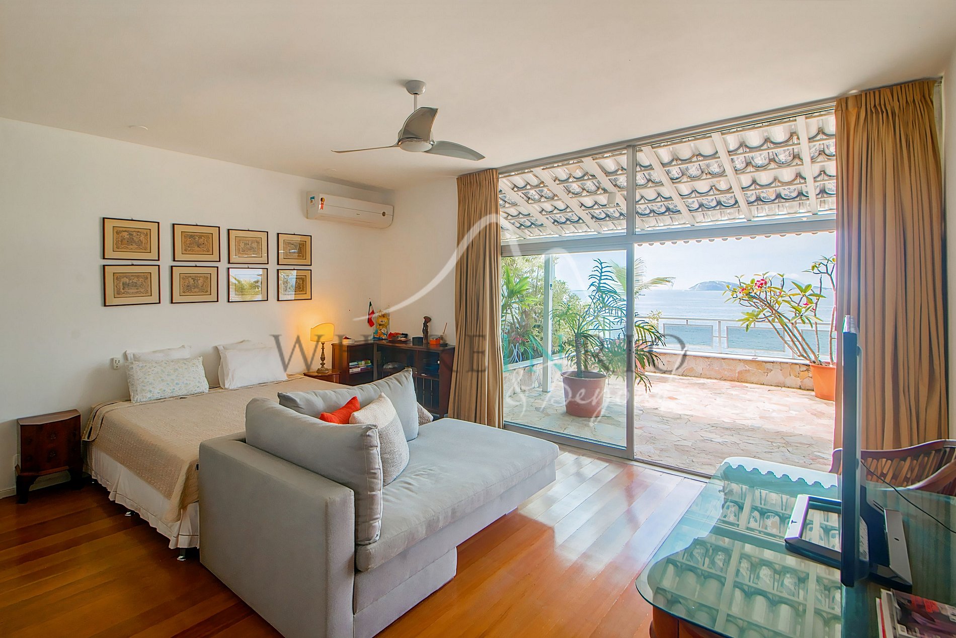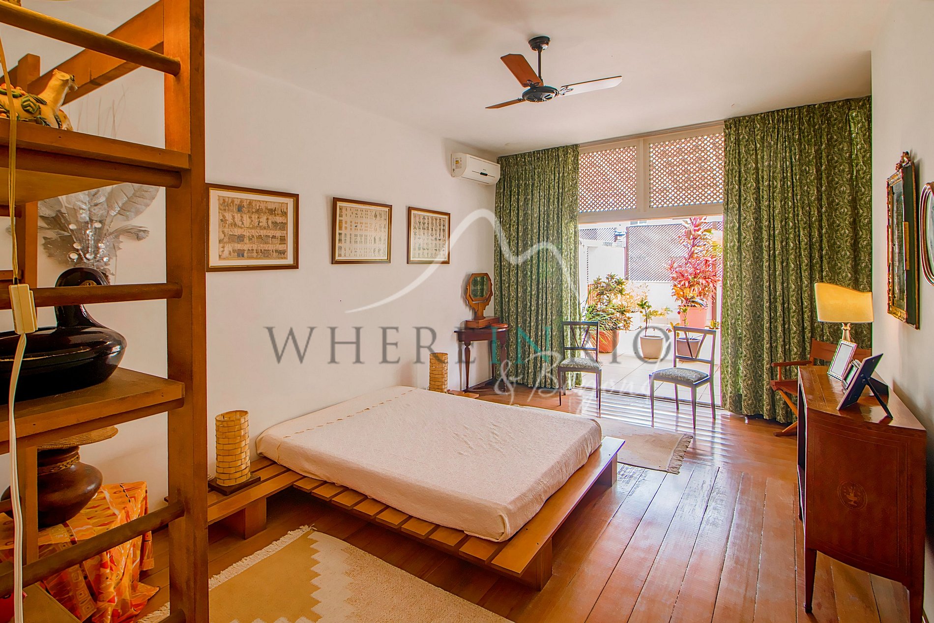 A cobertura possui uma ampla sala de estar com janelas grandes que proporcionam muita luz tropical e uma vista icônica da cidade e da praia. Todos os quartos têm acesso direto ao terraço. A suíte master possui um terraço frontal privativo com vista para o mar e para o Rio, enquanto os demais quartos compartilham o terraço dos fundos — perfeito para momentos de tranquilidade.