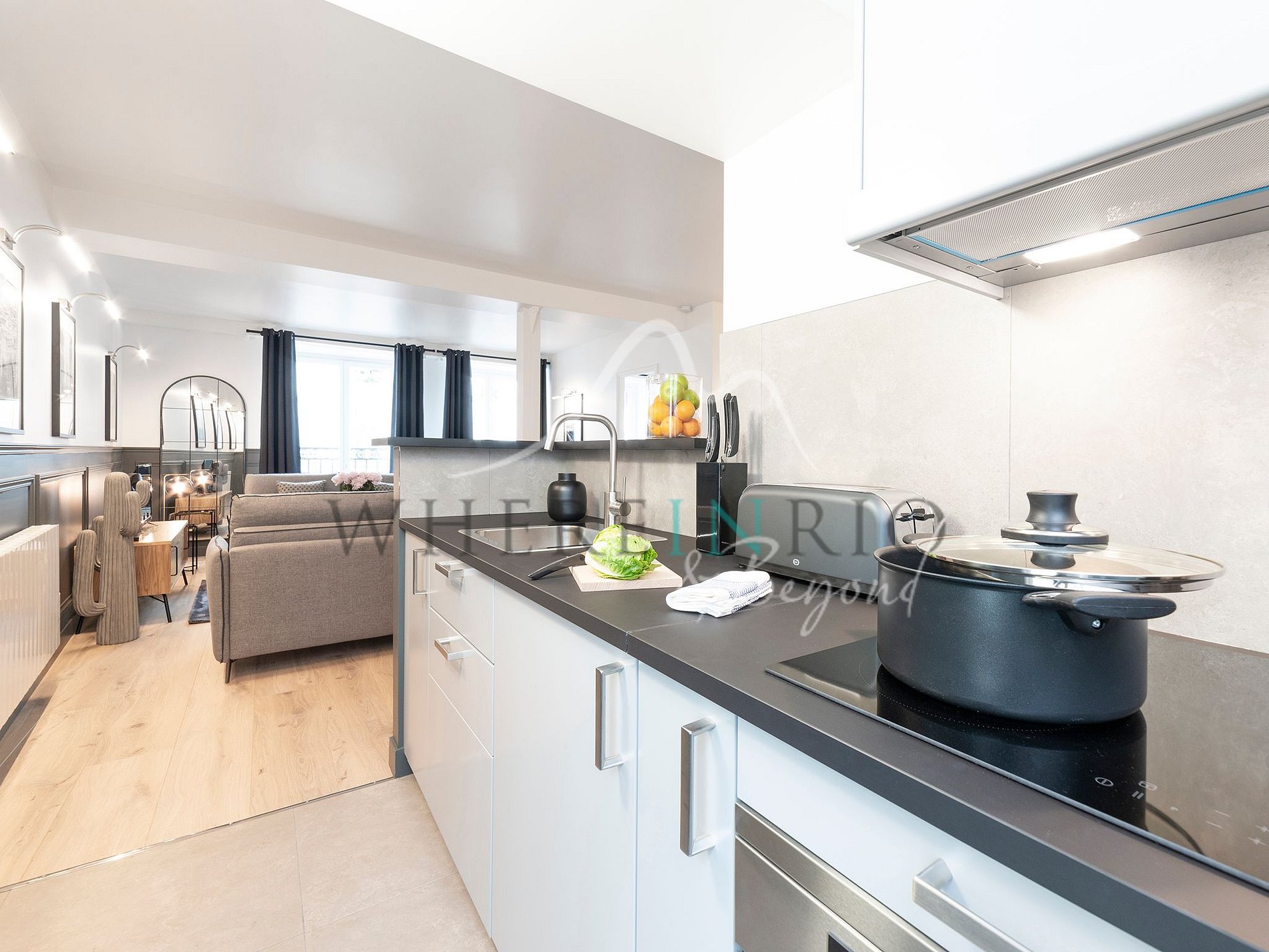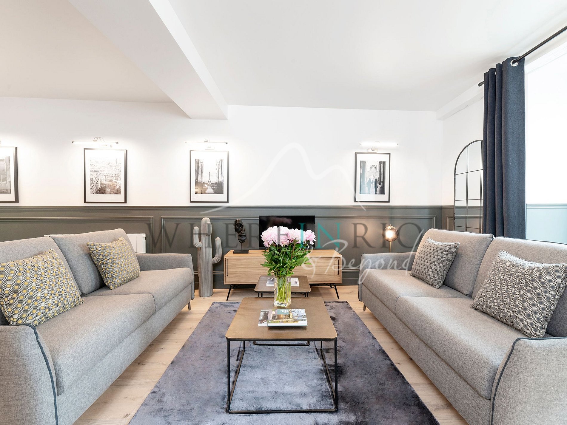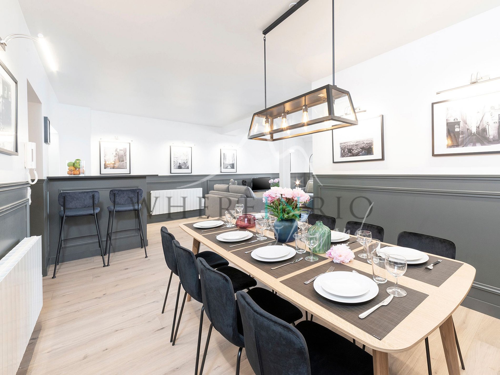 Localizado no primeiro andar, ele tem 4 quartos, 3 banheiros, uma cozinha totalmente equipada, uma sala de jantar e uma ampla sala de estar ideal para socializar. Você vai adorar o charme parisiense e a atmosfera serena.