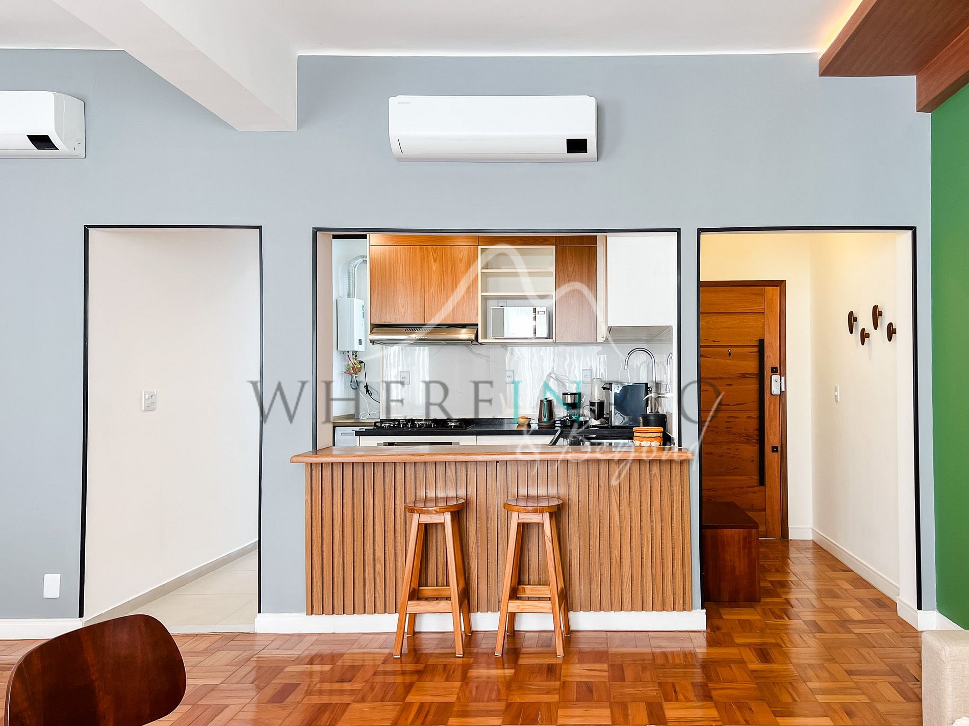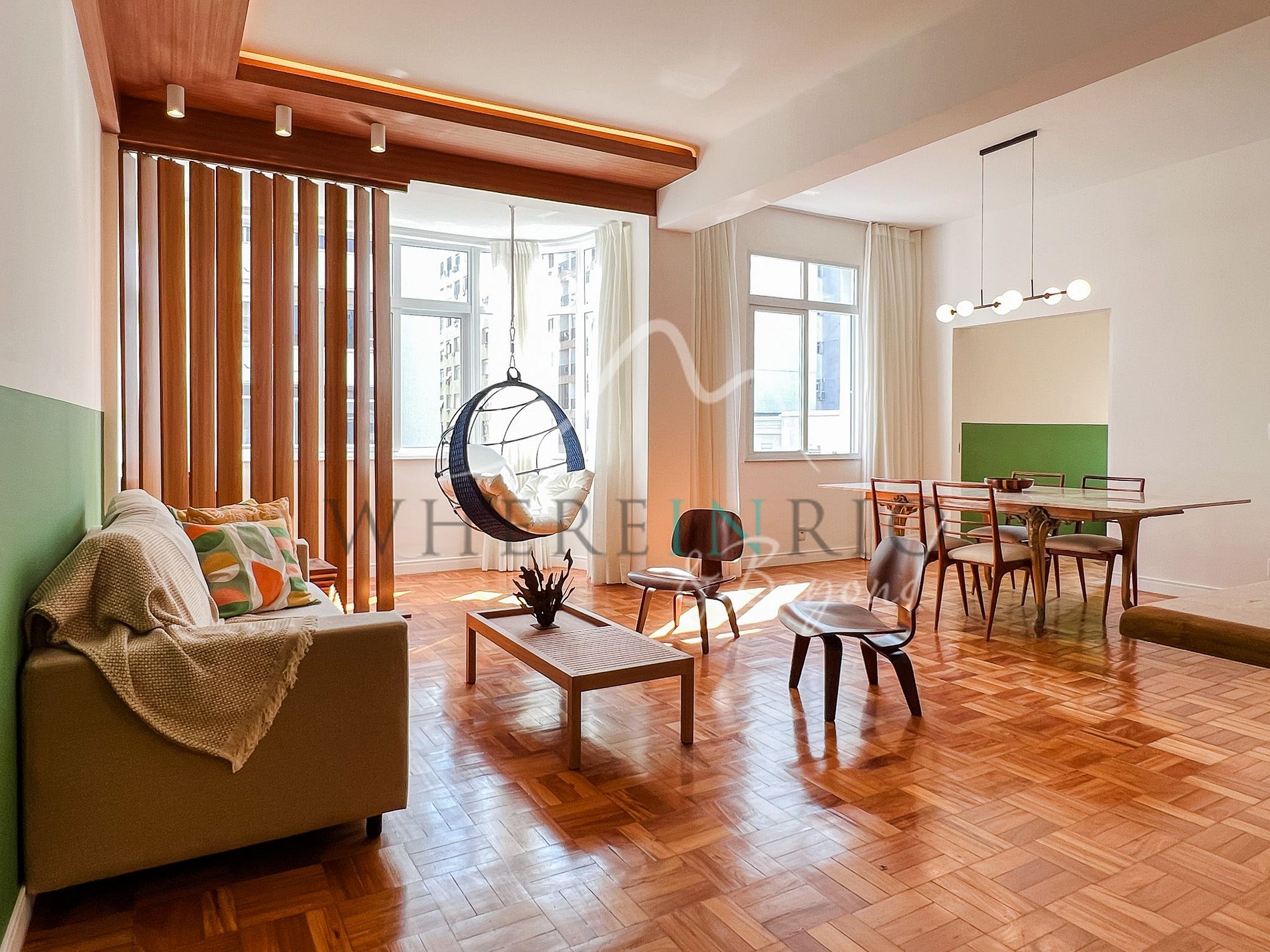 Charmoso apartamento de 2 quartos, totalmente reformado, com 100m², em excelente localização em Copacabana, a poucos passos da praia. Ideal para férias no Rio de Janeiro.