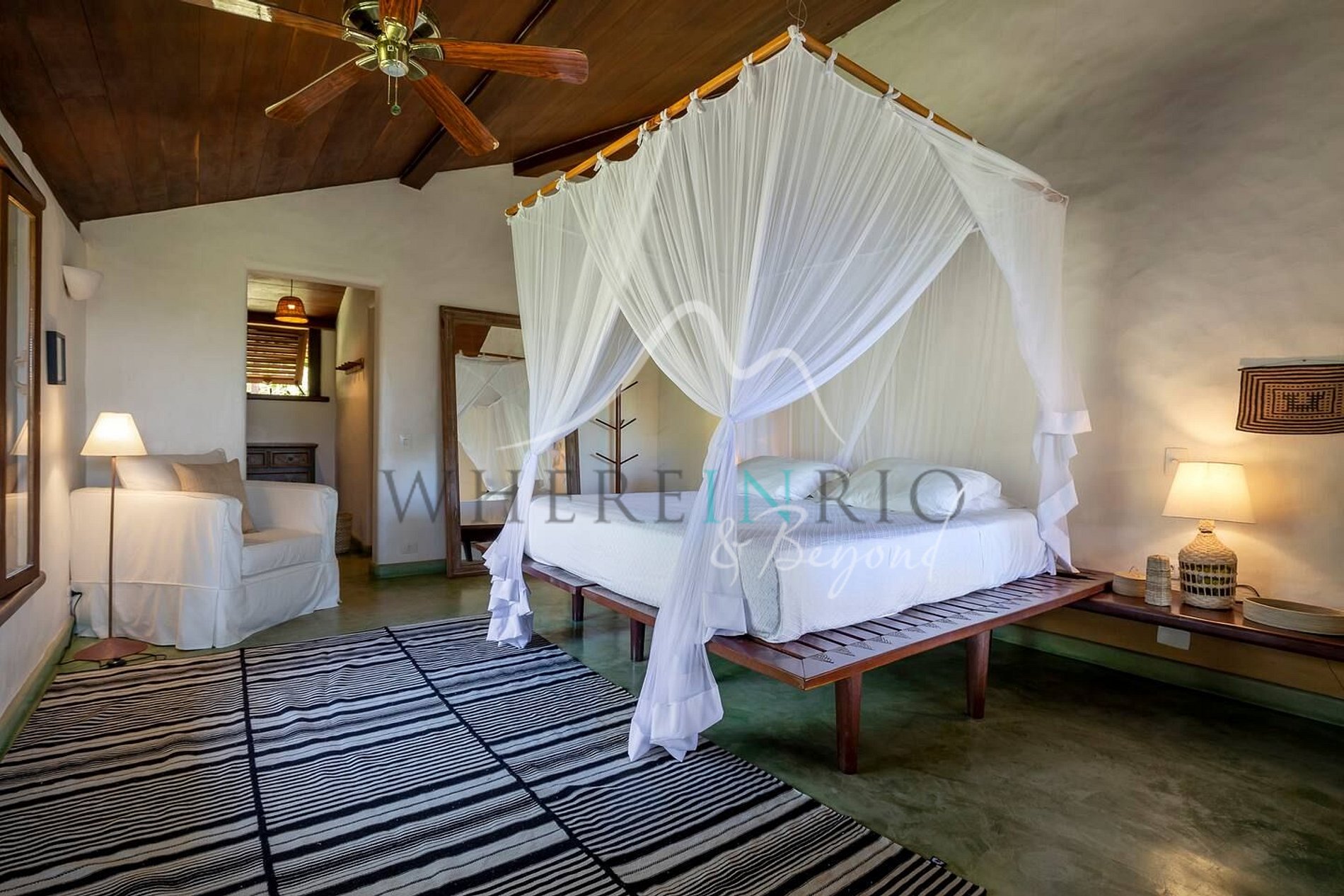 Localizada em uma área tranquila de Trancoso, a casa está próxima ao icônico Quadrado, com suas fachadas coloridas, restaurantes renomados e boutiques charmosas. A região é conhecida por sua atmosfera descontraída, porém sofisticada, que une luxo e autenticidade.