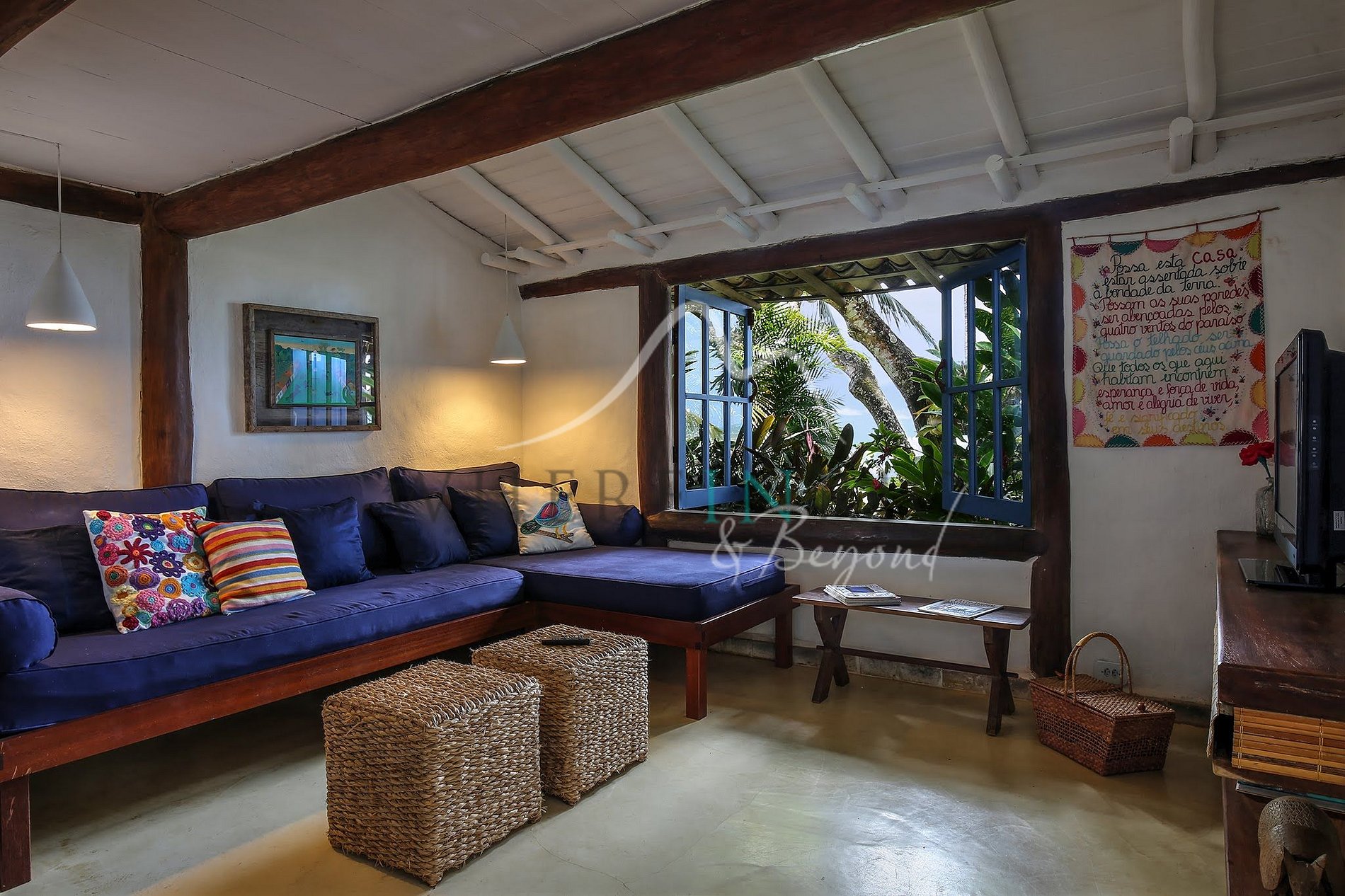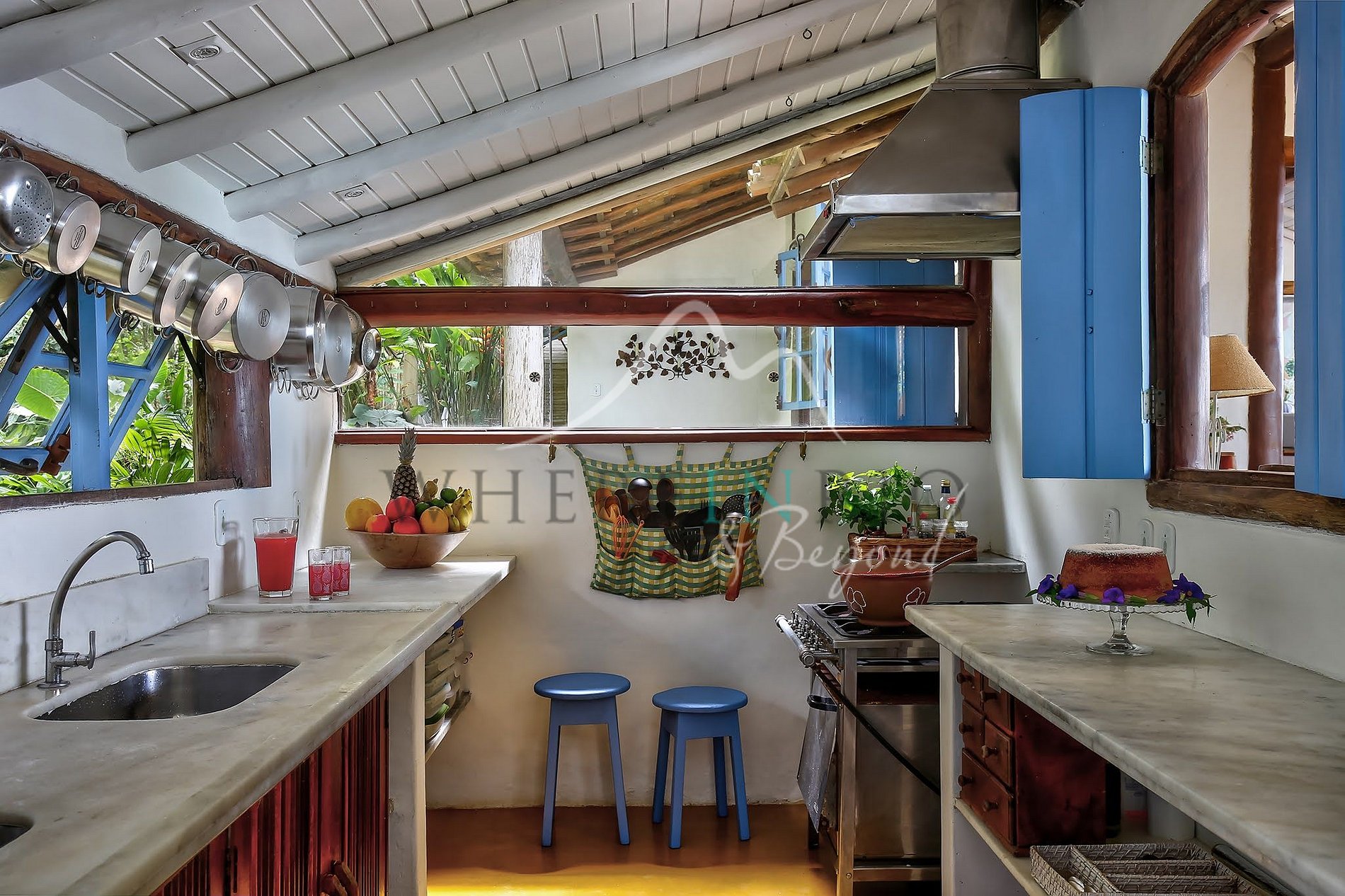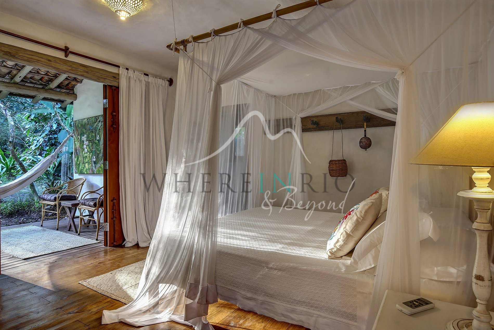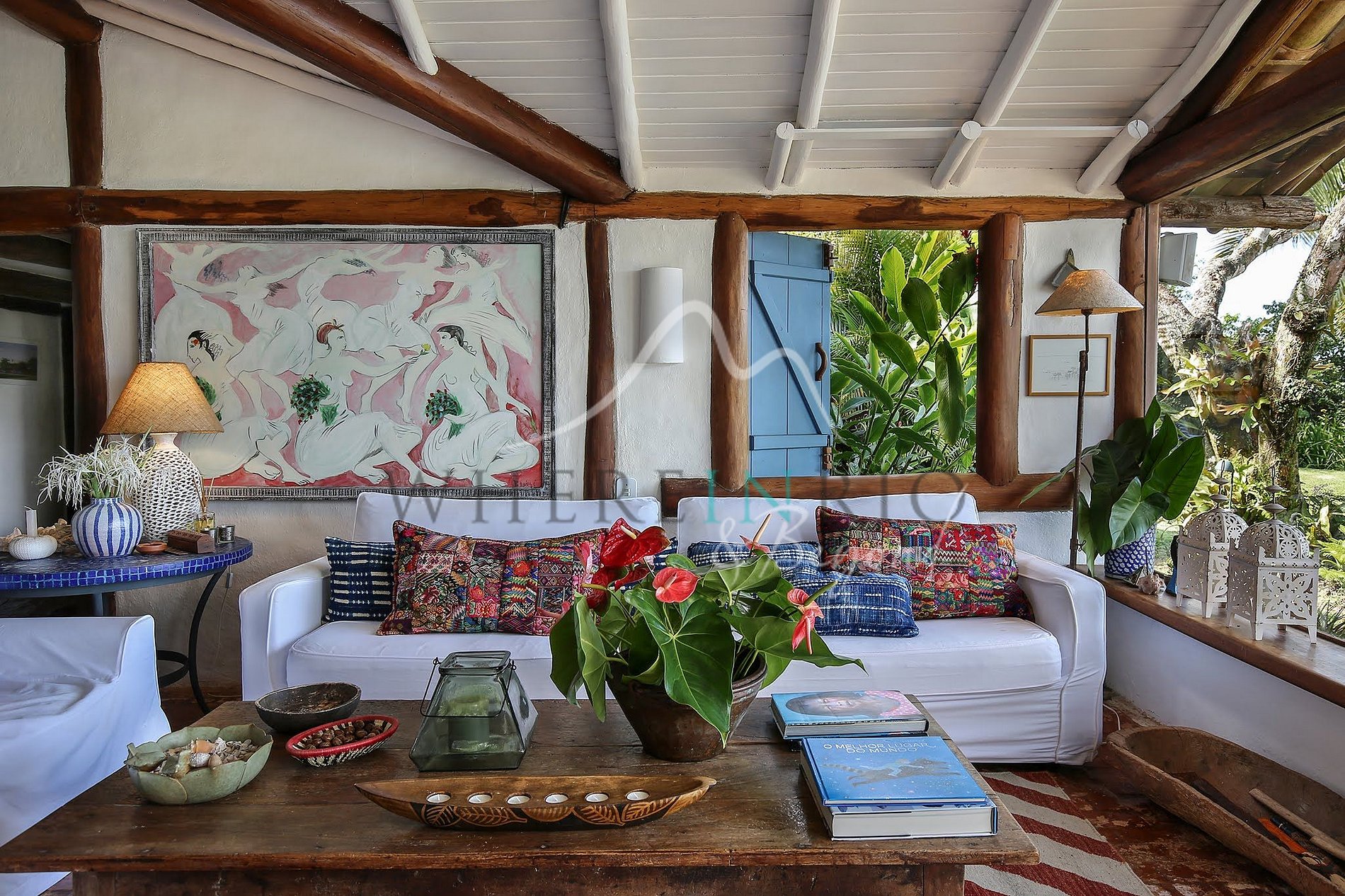 Rodeada pela natureza, a casa é decorada com arte e artesanato brasileiro, combinando conforto e estilo rústico. Com sete suítes, áreas abertas e duas piscinas, oferece um ambiente acolhedor com equipe completa para uma estadia tranquila.